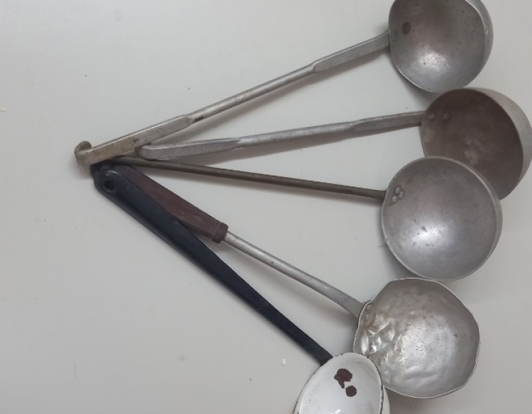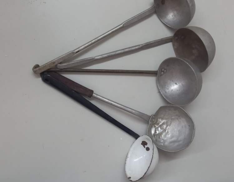 Cucharones soperos de aluminio y loza
