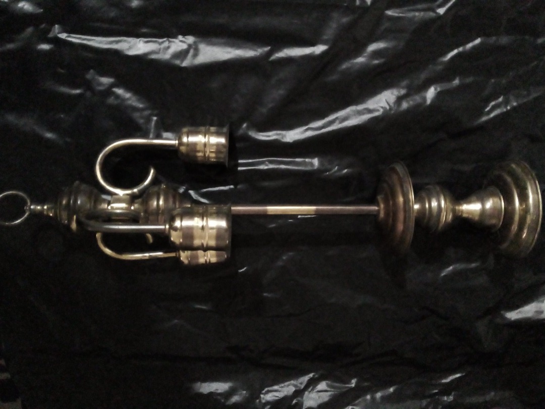 Araña 3 luces de bronce 56cm de alto con portalamparas para focos vela (no incl.).