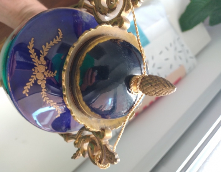 30 CM. APROX. La tapa esta restaurada y al parecer quedo pegada. Es resto impecable.