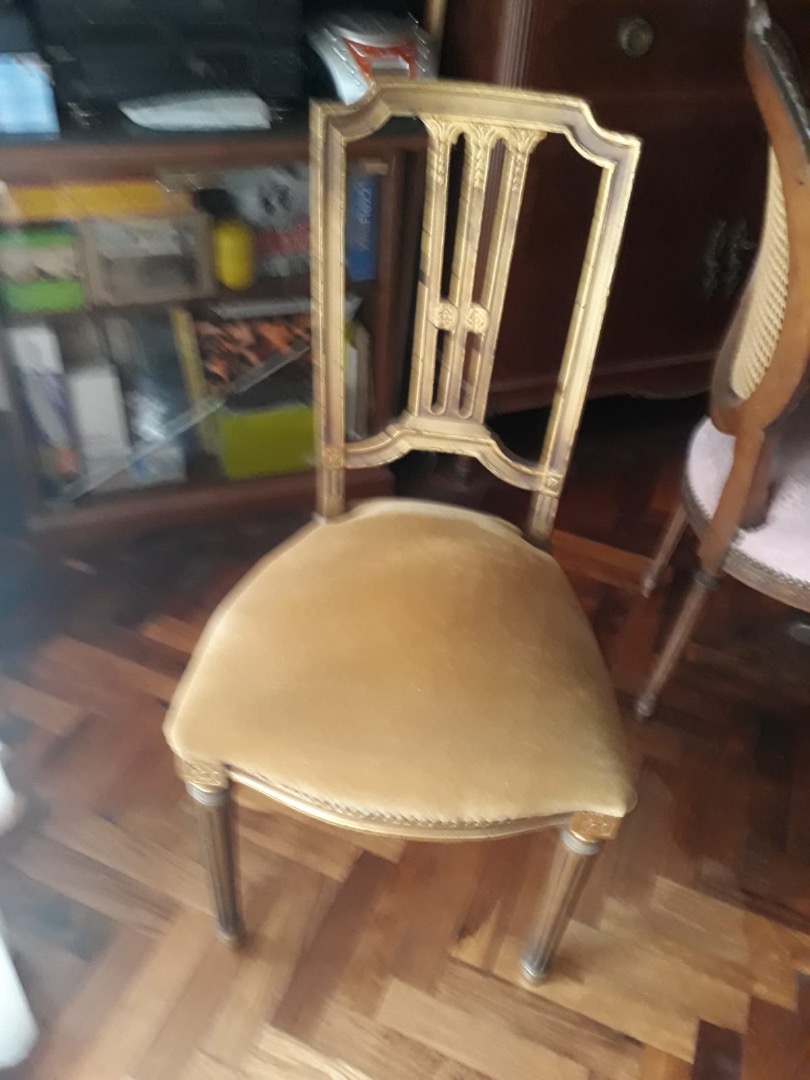 Silla estilo Luis XVI tapizado pana con estructura de madera, impecable
